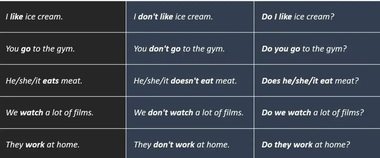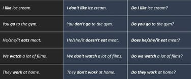 For the negative, we use don't or doesn't.