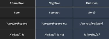 We can use the present simple of the verb to be to talk about situations and states in the present. I am ten years old. They are Egyptian.